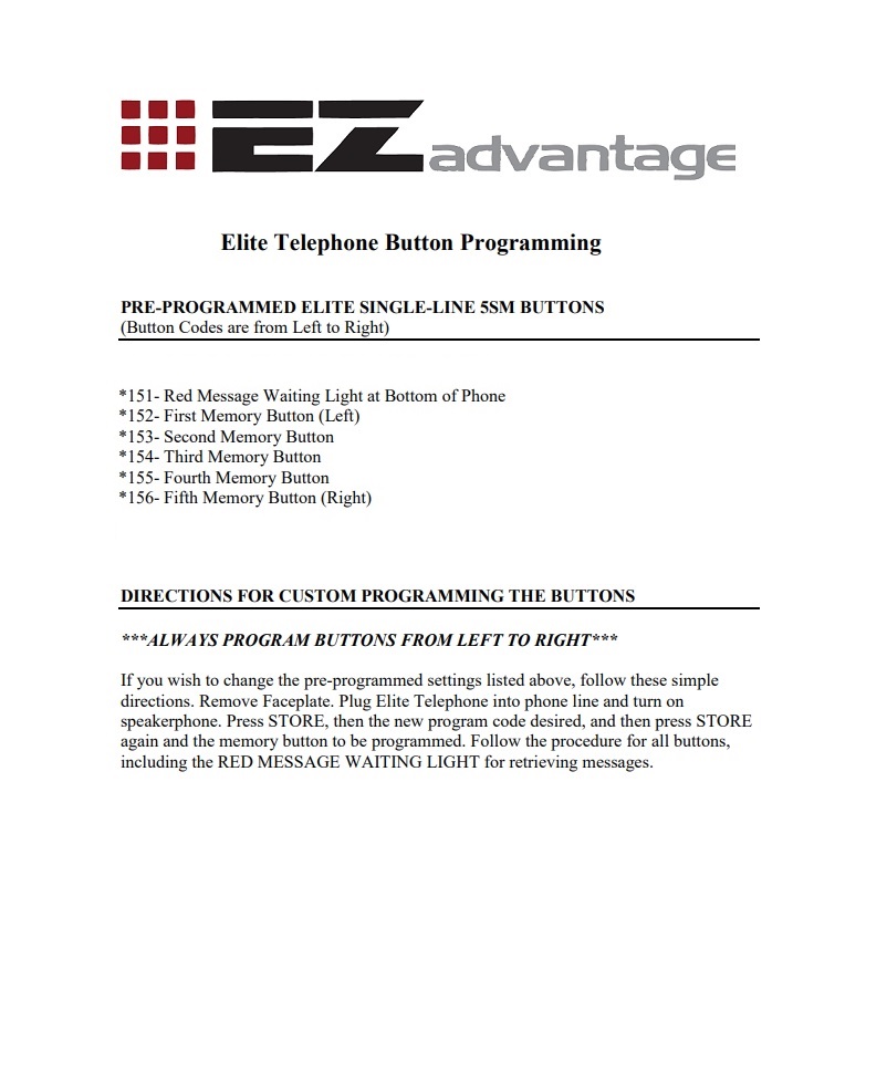 EZ-Elite 5SM Button Programming